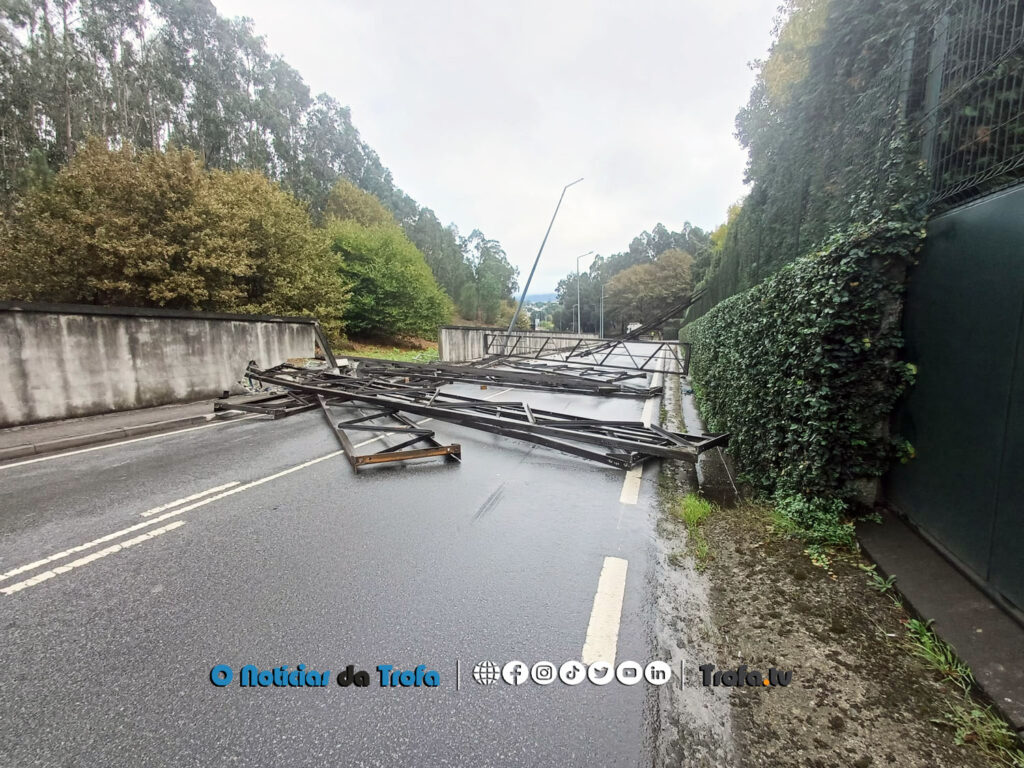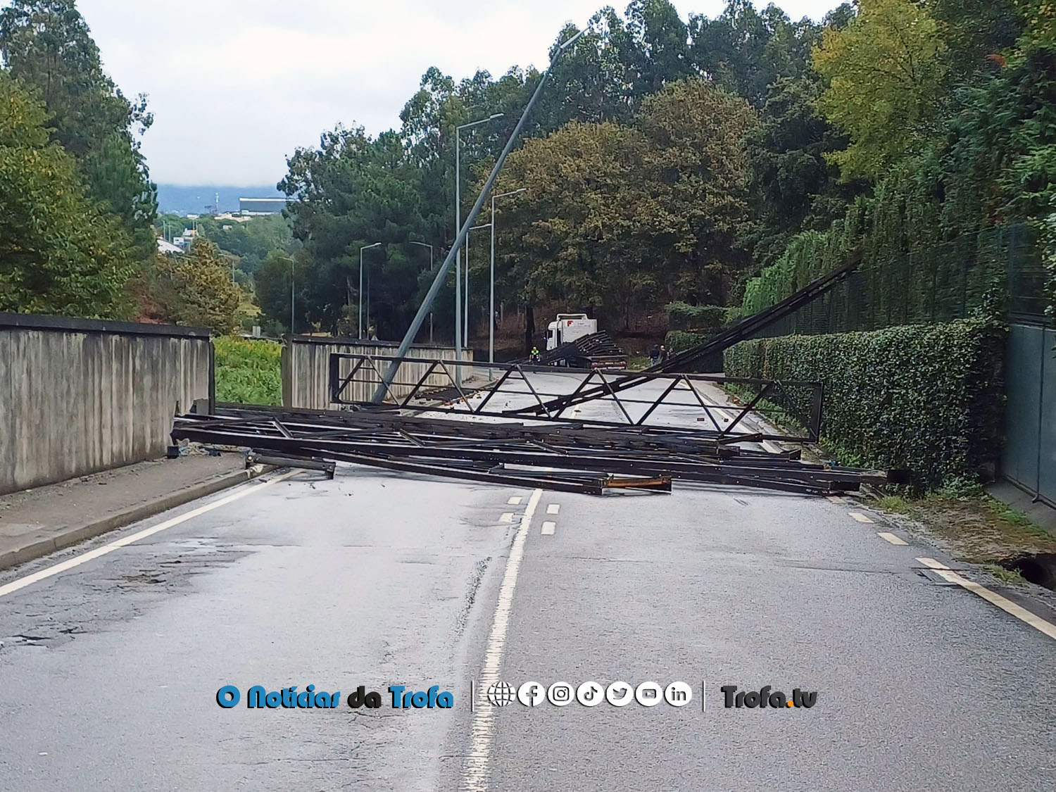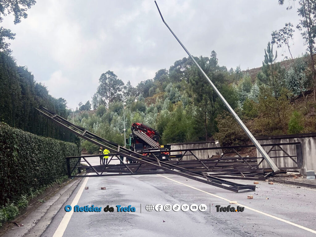 As estruturas metálicas transportadas ficaram espalhadas na via, impedindo a circulação automóvel.