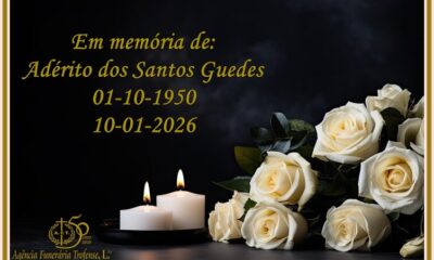 Faleceu Adérito dos Santos Guedes, de 75 anos, marido de Maria Margarida Sobrinho Salgueiro Guedes, residente na Rua Dr. António Augusto Pires de Lima, em Finzes....
