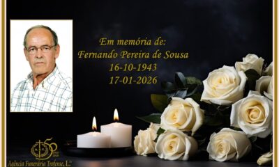 Faleceu Olegário da Costa Lima, com 82 anos de idade, conhecido pela Barbearia Terroso. Velório: Quarta-feira, dia 14 de janeiro, pelas 15:00 horas, na Casa Mortuária...