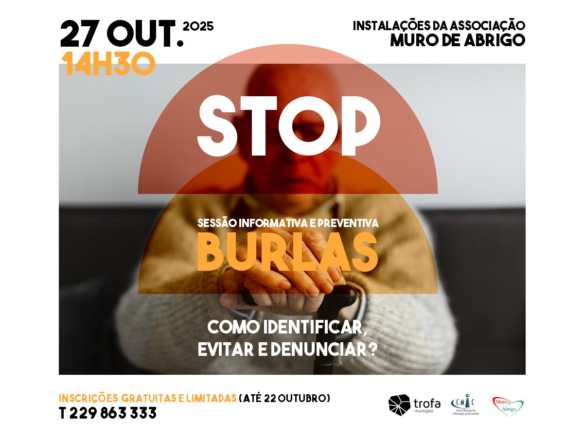 O Centro Municipal de Informação ao Consumidor (CMIC) da Trofa vai realizar uma sessão informativa e preventiva sobre o tema “Burlas” no dia 27 de outubro, às 14h30, na Muro de Abrigo.