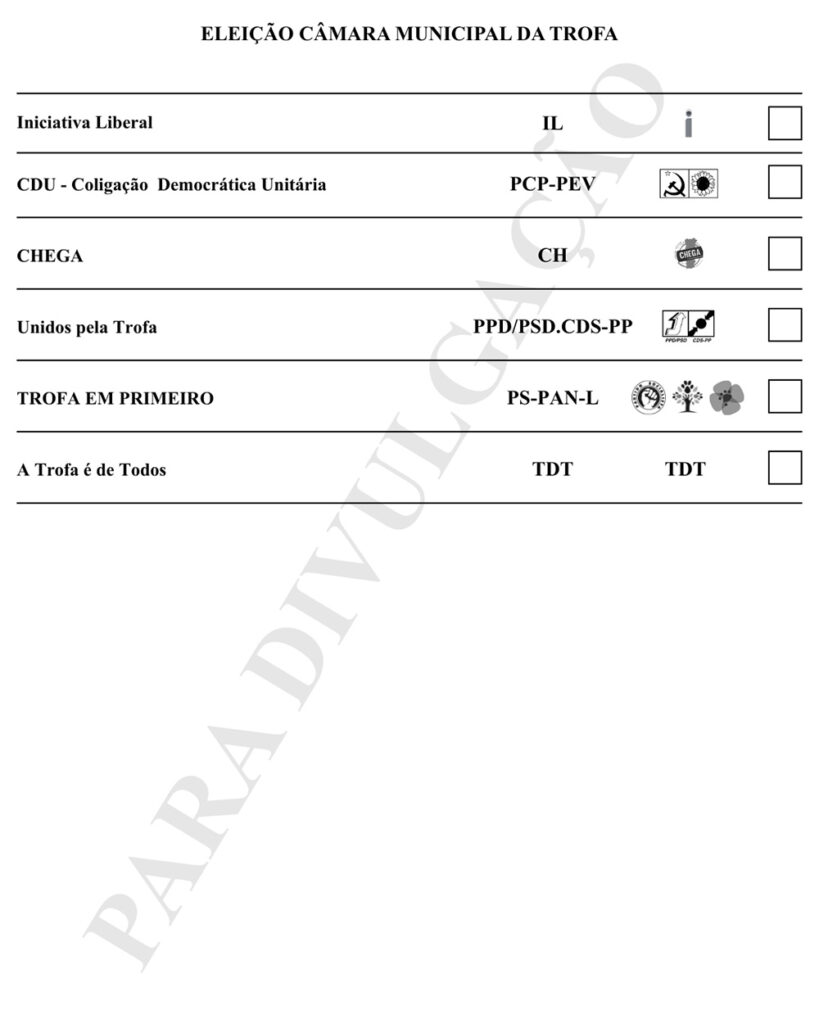 Esta é a ordem do boletim de voto para a Câmara Municipal da Trofa