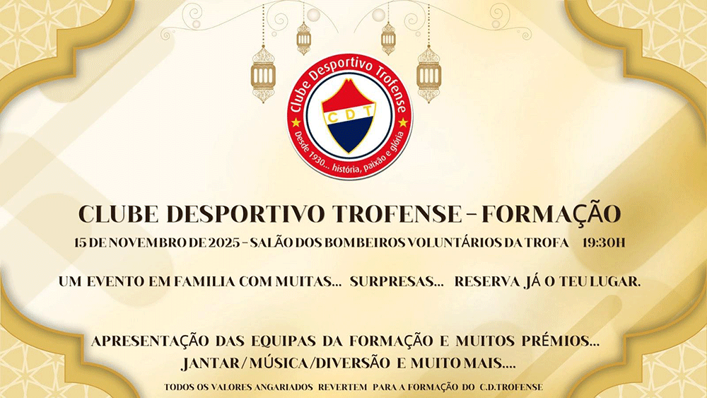 A iniciativa decorrerá no Salão dos Bombeiros Voluntários da Trofa, a partir das 19h30, e terá como ponto alto a apresentação das equipas de formação do clube. Além disso, o programa inclui jantar, música, prémios e várias surpresas, numa noite marcada pelo convívio, pela emoção e pelo espírito de união entre atletas, treinadores, dirigentes e famílias.