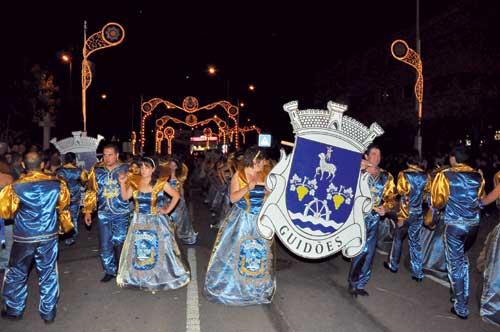 “A 24 de junho, o povo de Guidões celebra o seu padroeiro e alegra os corações. É o S. João Baptista que veio p’ra abençoar toda a nossa freguesia explode de alegria e foguetes pelo ar. Ó Póvoa, ai ó linda Póvoa, sai toda para a rua com arco e balão”. O lugar da Póvoa foi o primeiro a desfilar no centro da freguesia de Guidões. Na noite fria de sábado, o Outeiro foi o segundo a mostrar os trajes vistosos e as danças ensaiadas ao longo de meses: “Ó meu S. João, ó meu S. João, tu anda para a rua e traz um balão, ó meu S. João, ó meu S. João, tu anda para a rua, ó meu folião”. Seguiu-se o Cerro, que, literalmente, vestiu o brasão da freguesia para honrar o santo padroeiro: “S. João a noite é tua, vem para a rua ouvir cantar, vem dançar feliz, contente, na marcha da gente que é tão popular. S. João, a noite é tua, vem para a rua, p’ra reinação, sejas velho ou sejas novo, vem juntar-te ao povo, com arco e balão”. A Marcha da Primavera de Vilar levou a cor das flores às ruas de Guidões: “Vilar é lindo do coração, tudo fazemos com união, toda a aldeia se esmerou com esta marcha a S. João. Nós começamos esta marcha com amor, para dar à nossa aldeia este grande valor”. As gentes da Aldeia Nova e do Bicho foram as últimas a desfilar, mas nem por isso a vontade de cantar e dançar esmoreceu: “O Bicho e Aldeia Nova, da minha rua até à igreja, dançam com alegria, para que toda a gente nos veja. Venham todos ver a gente, que aqui ninguém relaxa, todos dançamos contentes por trazer a nossa marcha”. Os versos eram cantados com fervor e todos queriam que a marcha do seu lugar brilhasse.