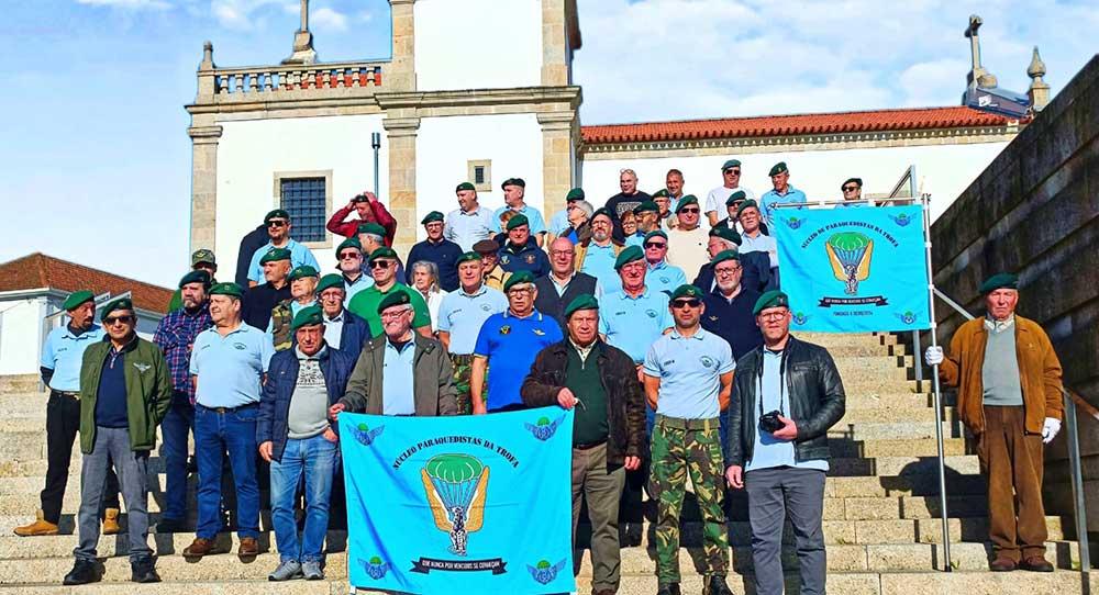 O almoço, realizado na Petisqueira de Finzes, é um dos convívios promovidos pelo núcleo, com o objetivo de preservar o legado do paraquedismo e também criar e manter laços entre todos.