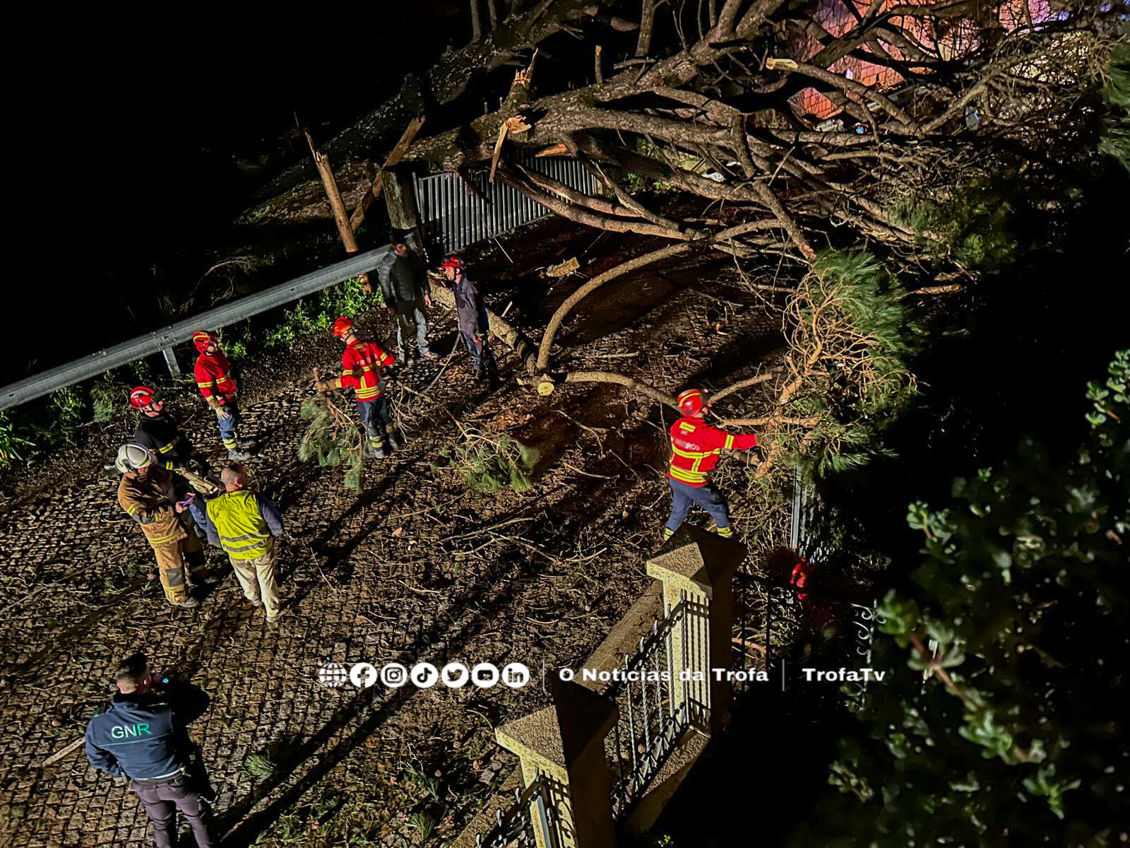 Queda de pinheiro provoca danos e corta trânsito em Guidões