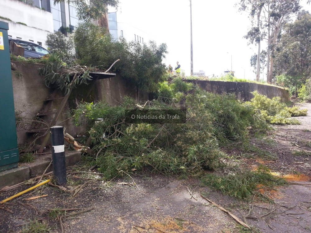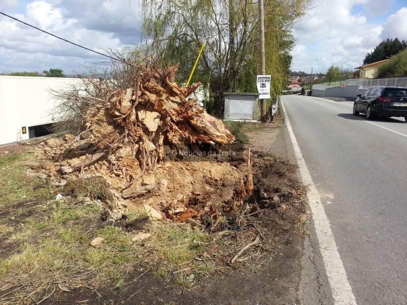 Ventos fortes provocaram a queda de árvores, como a que se encontrava junto à Estrada Nacional 104, perto da Metalogalva, empresa onde também se registaram estragos, principalmente na cobertura.